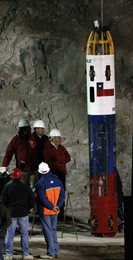 Em caso de emergência, a parte inferior da cápsula poderá ser separada do topo e o mineiro resgatado poderá descer de volta para a mina através do uso de uma corda.